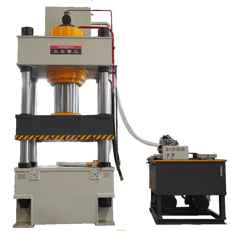 1000吨道路减速带热压液压机是一种专为道路减速带生产设计的大型液压设备,是一种利用液体压强来传递力的机械设备。它采用三梁四柱式结构或框架式结构,由机身、油缸、行程限位装置、模具等组成,具有结构简单、经济实用、承载能力强、稳定性好等特点。该设备通过液压系统产生巨大的压力,推动活塞或工作台运动,实现减速带的模压成型。,具备高精度、高效率、高稳定性及安全可靠等特点,广泛应用于城市道路、高速公路、停车场等场所。此外,该设备还可用于金属加工、塑料加工、橡胶加工、压力试验、热锻成型、玻璃钢复合材料模压、金属板材拉伸、粉末制品压制成型等领域。